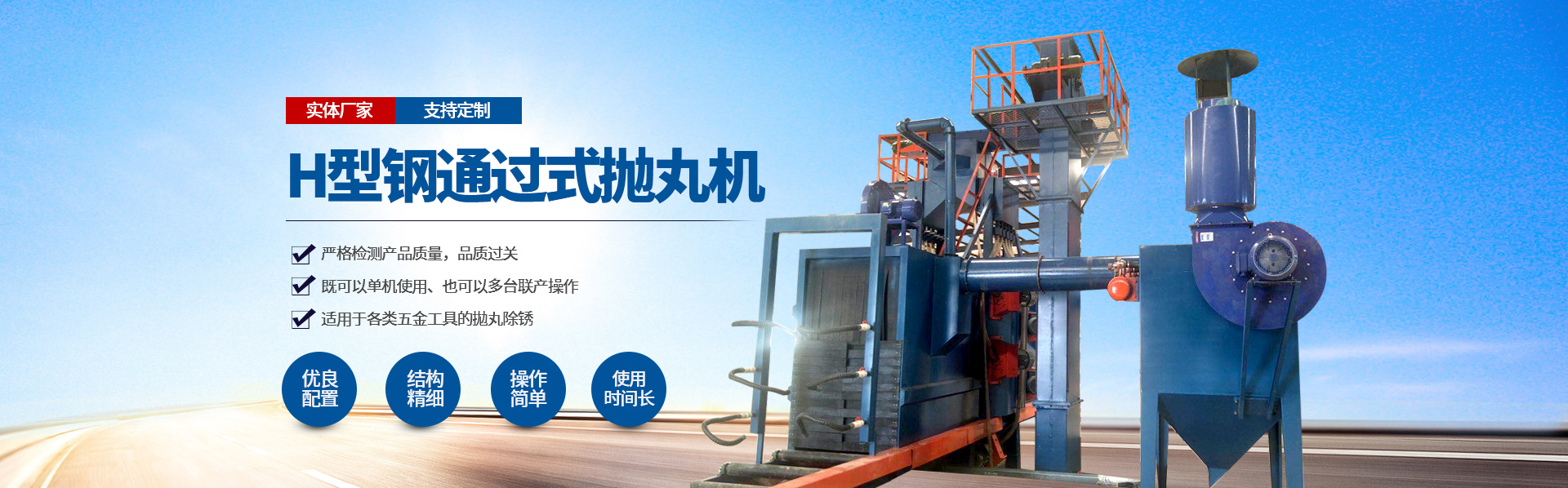 主要產(chǎn)品有:"H"型鋼通過(guò)式拋丸機(jī);Q69系列大型鋼板預(yù)處理生產(chǎn)線(xiàn);QG系列鋼管拋丸清理機(jī);Q31、Q32、Q35、Q36、Q37、Q38、Q48、 Q58、Q76等系列拋丸清理機(jī);S11系列混砂機(jī)及各種型號(hào)的特種合金鑄件,耐磨配套件等。本公司亦可根據(jù)客戶(hù)要求進(jìn)行非標(biāo)準(zhǔn)設(shè)備制造。